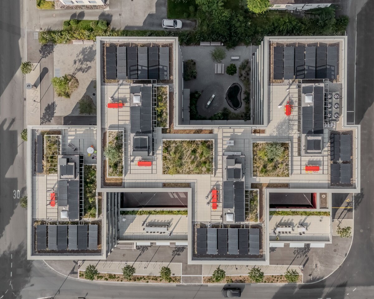 Fassadenbekleidung aus Keramik und Metall, Photovoltaikanlage 78.32 kWp